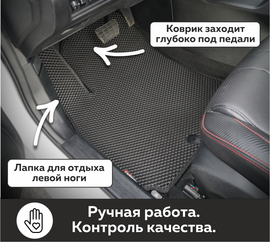 Коврики EVA надёжно крепятся с помощью оригинальных систем фиксации. Благодаря клипсам и липучке коврики защищены от смещений, что обеспечивает комфорт и безопасность вождения. Максимальное удобство также достигается точными, улучшенными лекалами для каждого автомобиля.
