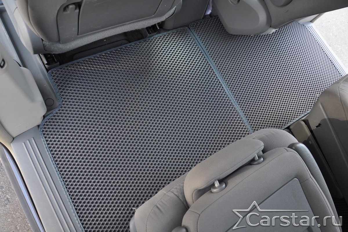 Автомобильные коврики EVA Chrysler Grand Voyager V (2008->) 2 ряд: кресла 1+1 не убираются в пол – это долговечные, удобные и универсальные аксессуары, которые помогут надежно защитить салон и багажник вашего авто от пыли, грязи и влаги в любое время года.