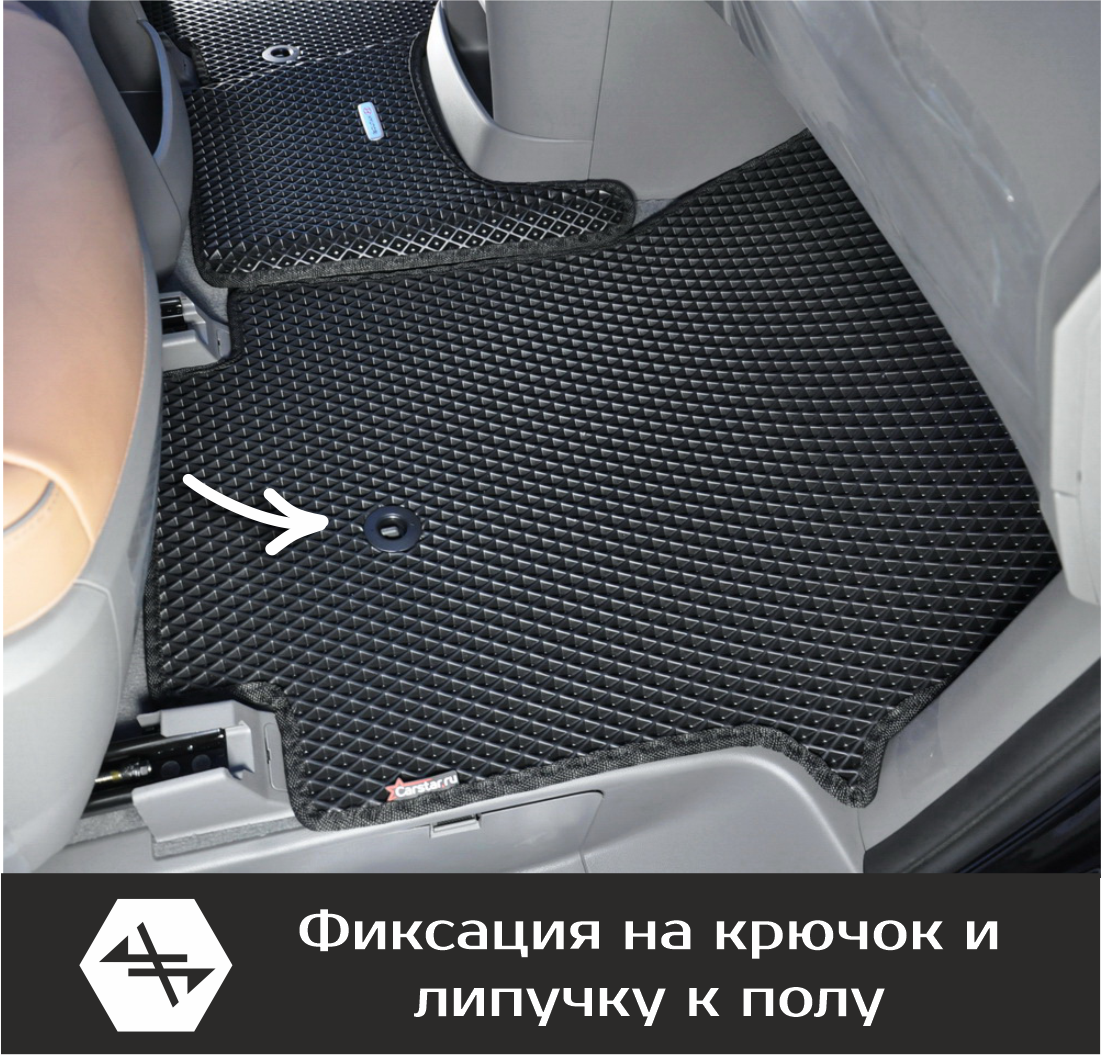 Коврики EVA надёжно крепятся с помощью оригинальных систем фиксации. Благодаря клипсам и липучке коврики защищены от смещений, что обеспечивает комфорт и безопасность вождения. Максимальное удобство также достигается точными, улучшенными лекалами для каждого автомобиля.