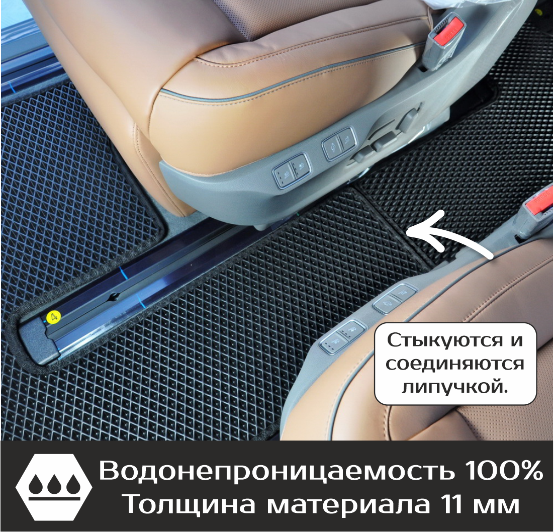 Автомобильные коврики EVA Hyundai Staria 7 мест (2021->) – это долговечные, удобные и универсальные аксессуары, которые помогут надежно защитить салон и багажник вашего авто от пыли, грязи и влаги в любое время года.