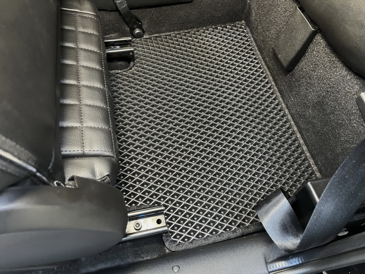 Толщина ковриков EVA составляет 10-12 мм. Глубина ячеек 7-8 мм. Такая толщина ковриков позволяет им служить довольно долго, не протираясь до 3 лет. А благодаря такой глубине ячеек коврик EVA площадью 1 кв.м. способен захватить около 3,5 л жидкости, сохраняя в чистоте вашу обувь и обивку салона.