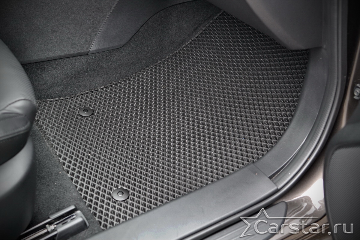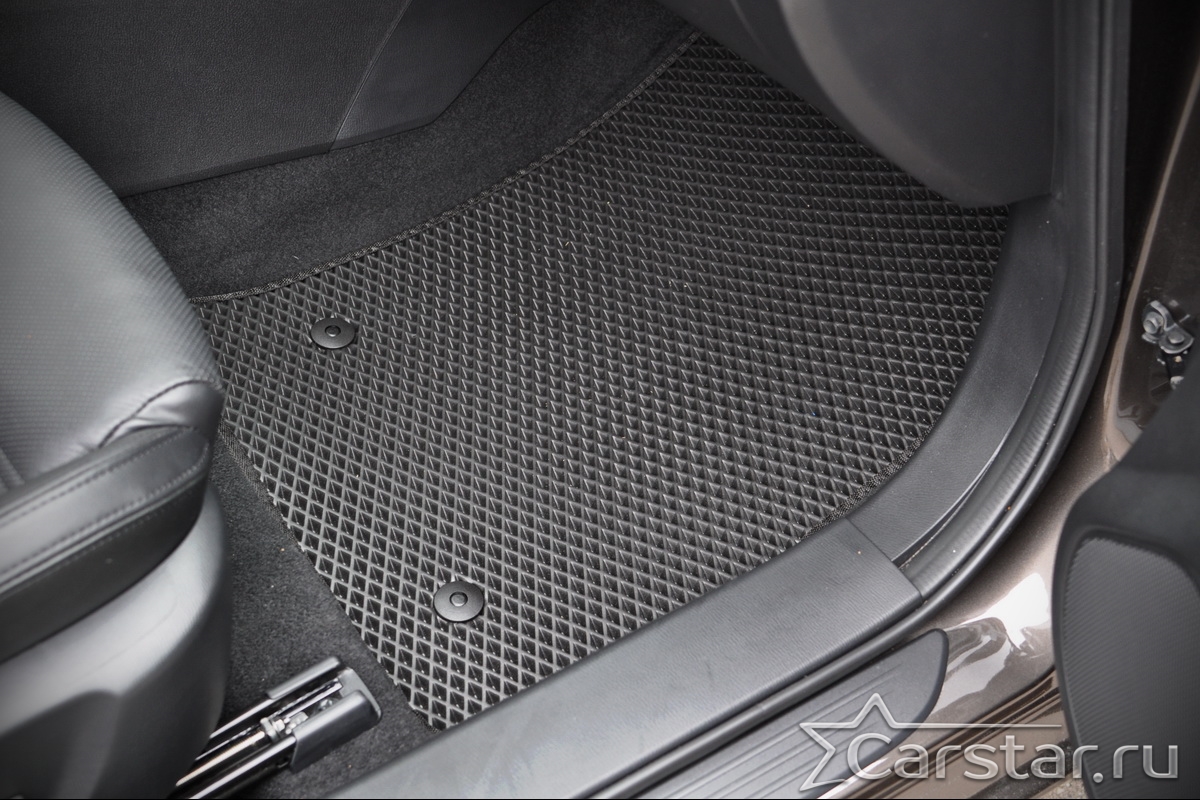 Коврики EVA надёжно крепятся с помощью оригинальных систем фиксации. Благодаря клипсам и липучке коврики защищены от смещений, что обеспечивает комфорт и безопасность вождения. Максимальное удобство также достигается точными, улучшенными лекалами для каждого автомобиля.