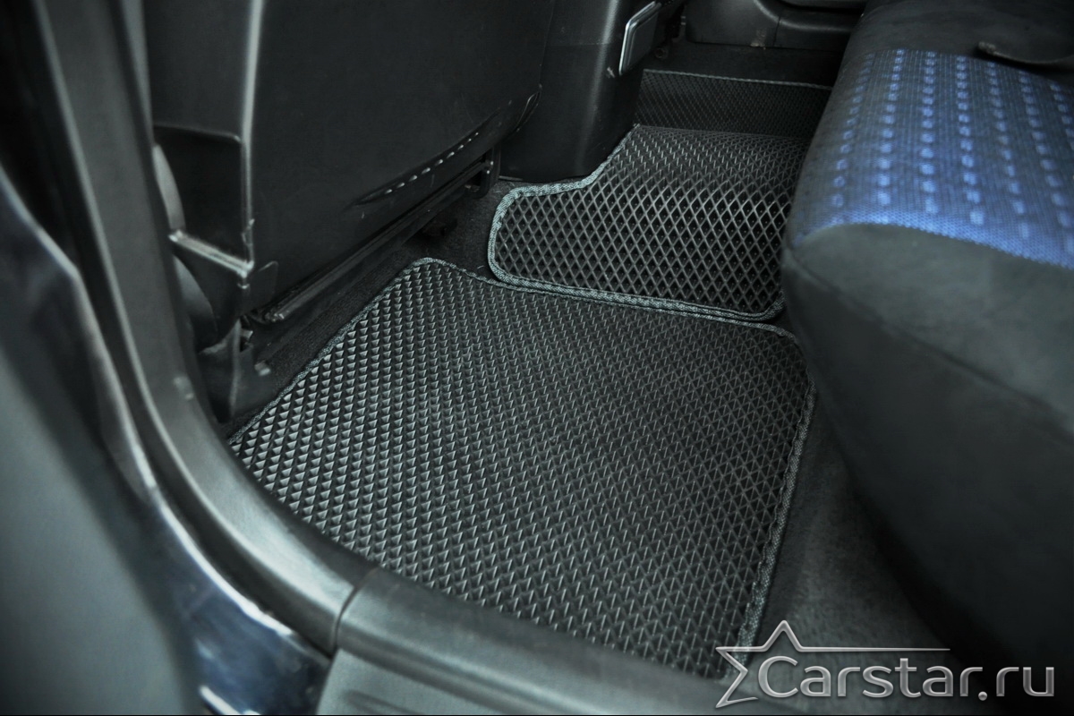 Толщина ковриков EVA составляет 10-12 мм. Глубина ячеек 7-8 мм. Такая толщина ковриков позволяет им служить довольно долго, не протираясь до 3 лет. А благодаря такой глубине ячеек коврик EVA площадью 1 кв.м. способен захватить около 3,5 л жидкости, сохраняя в чистоте вашу обувь и обивку салона.