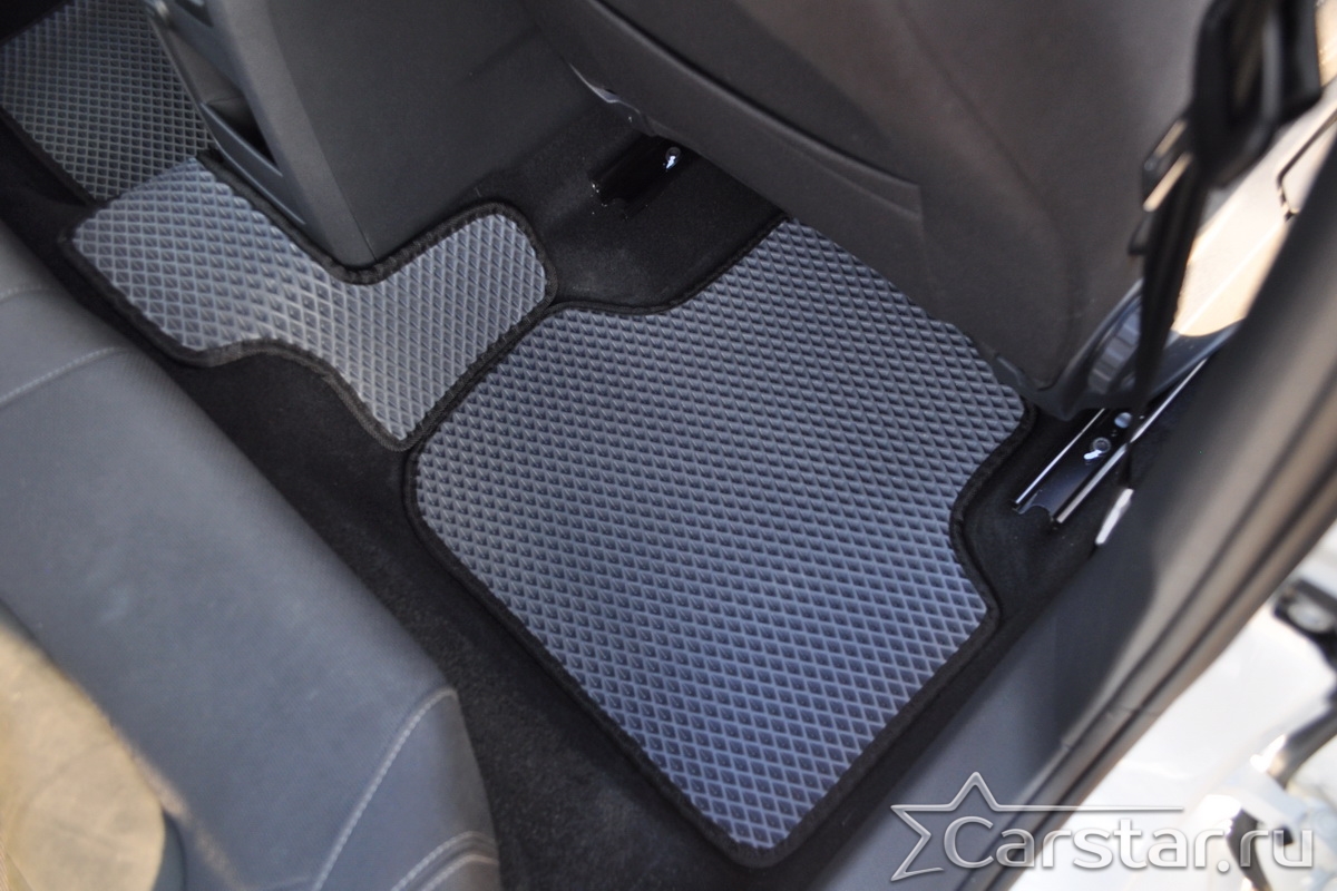Толщина ковриков EVA составляет 10-12 мм. Глубина ячеек 7-8 мм. Такая толщина ковриков позволяет им служить довольно долго, не протираясь до 3 лет. А благодаря такой глубине ячеек коврик EVA площадью 1 кв.м. способен захватить около 3,5 л жидкости, сохраняя в чистоте вашу обувь и обивку салона.