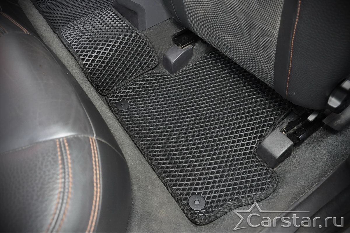 Коврики EVA надёжно крепятся с помощью оригинальных систем фиксации. Благодаря клипсам и липучке коврики защищены от смещений, что обеспечивает комфорт и безопасность вождения. Максимальное удобство также достигается точными, улучшенными лекалами для каждого автомобиля.