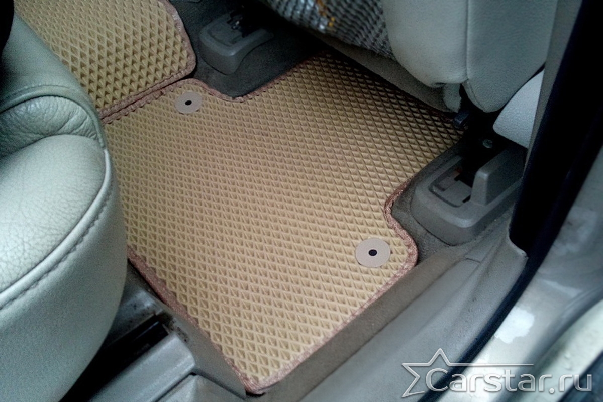 Толщина ковриков EVA составляет 10-12 мм. Глубина ячеек 7-8 мм. Такая толщина ковриков позволяет им служить довольно долго, не протираясь до 3 лет. А благодаря такой глубине ячеек коврик EVA площадью 1 кв.м. способен захватить около 3,5 л жидкости, сохраняя в чистоте вашу обувь и обивку салона.