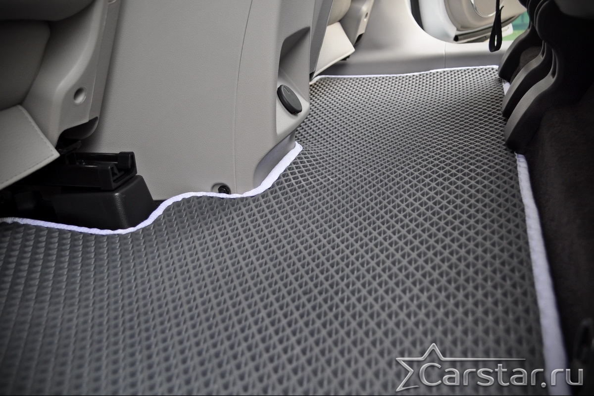 Текстильные коврики надёжно крепятся с помощью оригинальных систем фиксации. Обратная сторона имеет противоскользящее покрытие, что обеспечивает защиту от смещений и безопасность. Максимальное удобство достигается точными лекалами.