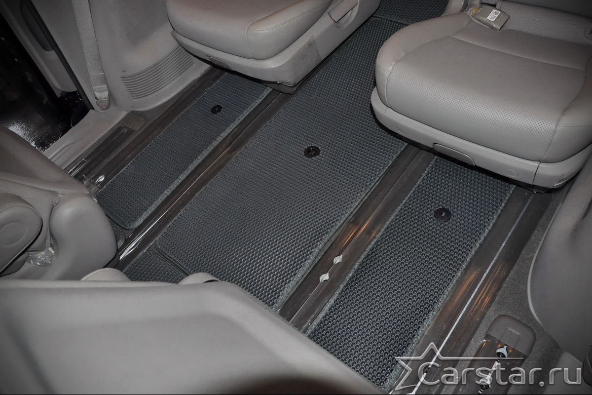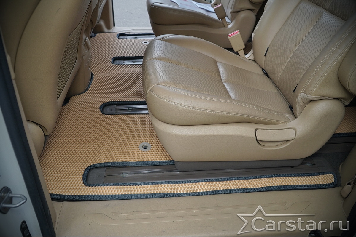 Текстильные автомобильные коврики Kia Carnival III (9мест) 2+2 без трансформеров (2014->) – это классический аксессуар, который обеспечит салону автомобиля неизменную чистоту, порядок и уют. Компания Carstar предлагает изделия из качественного ковролина в сочетании с полипропиленовым основанием на шипах, такая комбинация делает их прочными и водонепроницаемыми.