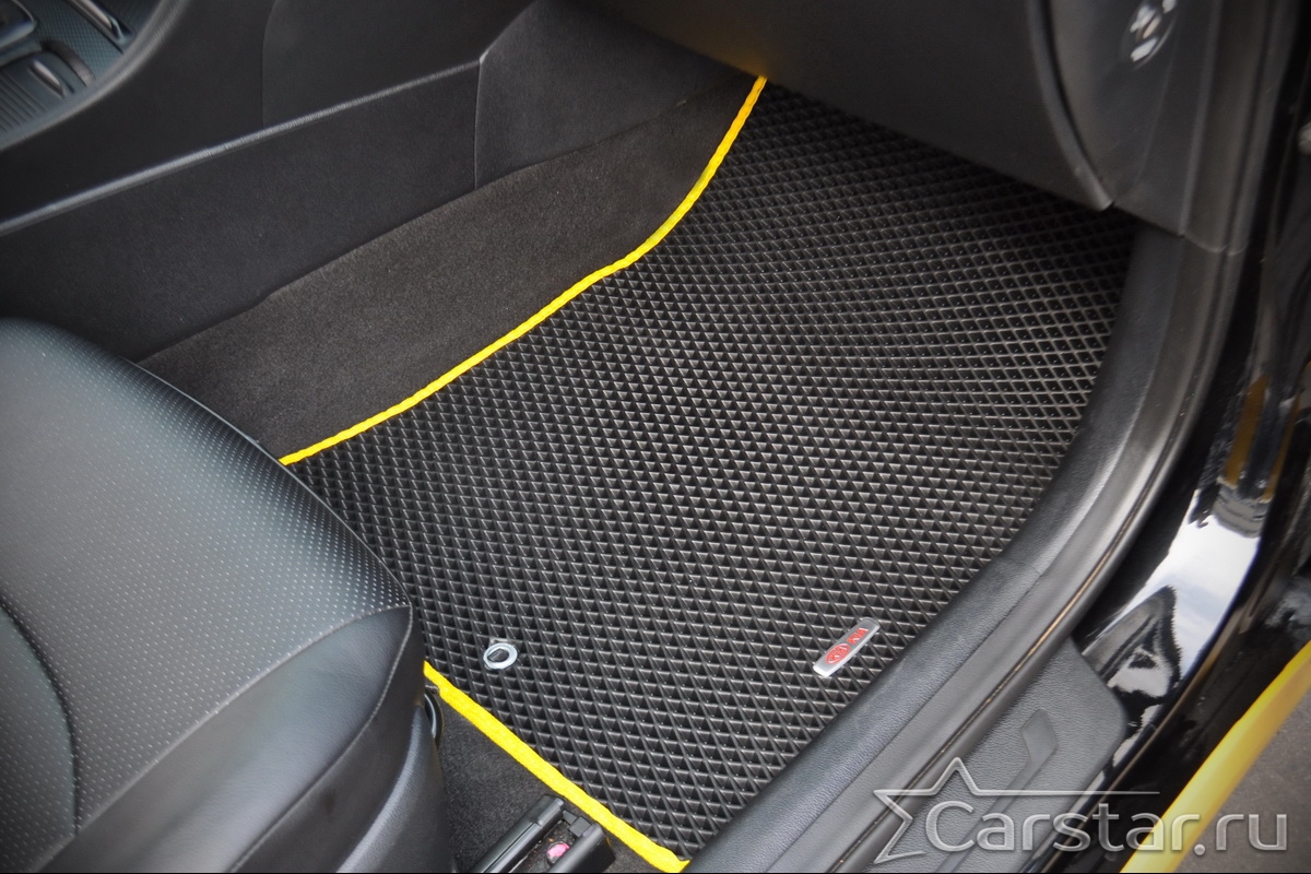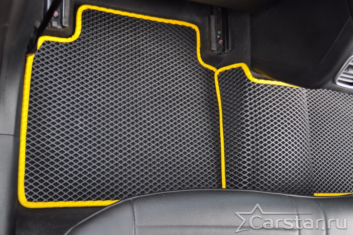 Текстильные коврики надёжно крепятся с помощью оригинальных систем фиксации. Обратная сторона имеет противоскользящее покрытие, что обеспечивает защиту от смещений и безопасность. Максимальное удобство достигается точными лекалами.